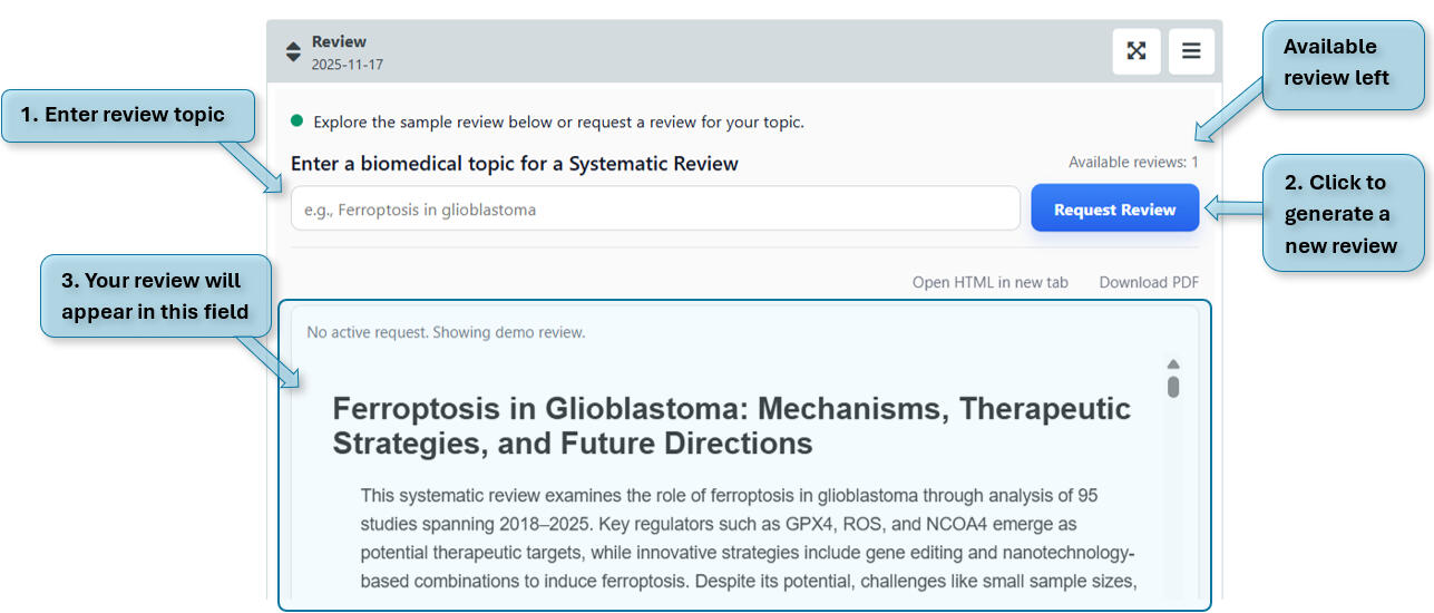 * Automatically search, screen, and synthesize biomedical research articles;